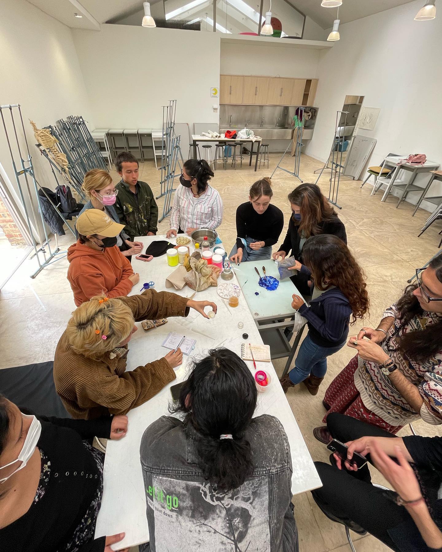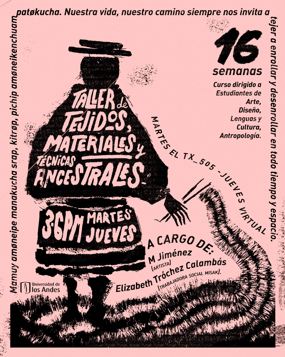 Esta oralidad y textualidad se extiende a un curso de textiles donde se comprende la raíz compartida entre texto y textil y esto se relaciona con prácticas de tejido y juntanza a partir de un entendimiento amplio del lenguaje capaz de conectar lo común y lo ancestral desde la comunicación verbal y no verbal.