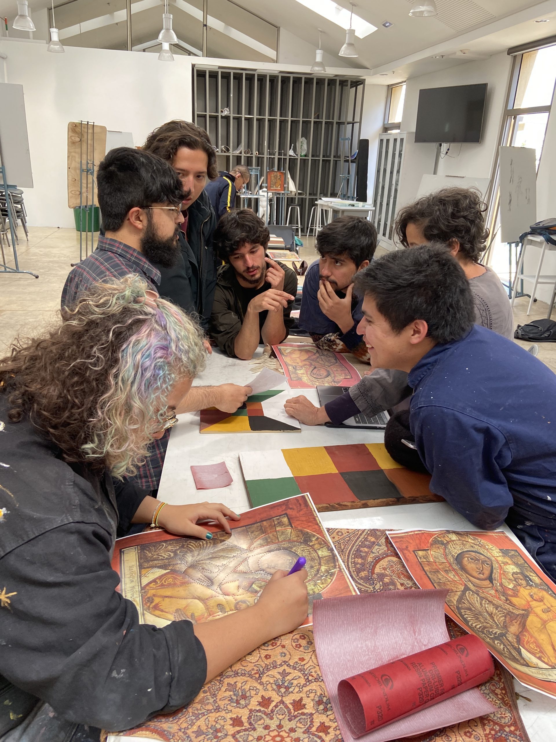Mural en el edificio TX Falabella en el campus de la Universidad de los AndesActivismo: En el Taller de Murales, grafitti y arte callejero también pinta y se repinta sobre una larga pared en una estación de tren abandonada y se participa de una “quedatón” nocturna para darle color a las pálidas paredes de los edificios del Departamento de arte y combatir esa estética de “paredes limpias, mentes en blanco”.