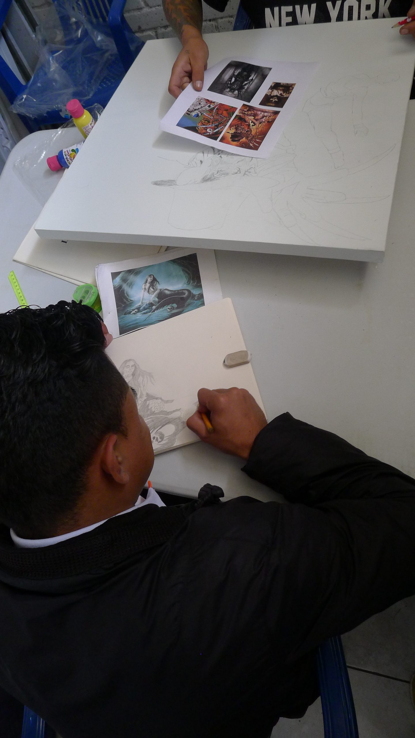 Escritura y dibujo: En este énfasis se da el cruce de la plástica con los medios electrónicos en un taller de comics donde se ve el plano pictorico de forma integral: se entiende el espacio de la hoja como campo de formación, expresión y autoconfrontación para aprender de diseño, escritura, dibujo, color, pixeles, escaneado, archivos, pirateo, impresión, gráfica análoga, digital y edición.